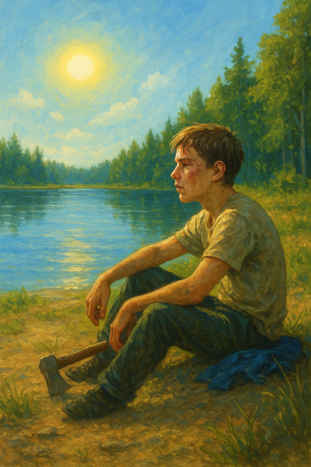 Когда Брайан пришёл в себя, всё вокруг было тихо. Он лежал лицом вниз, чувствовал под собой мокрую землю и запах глины. Ему казалось, что он не может дышать. Медленно он повернул голову и закашлялся. Изо рта вышла вода. Он вспомнил — самолёт, удар, озеро, тьма.