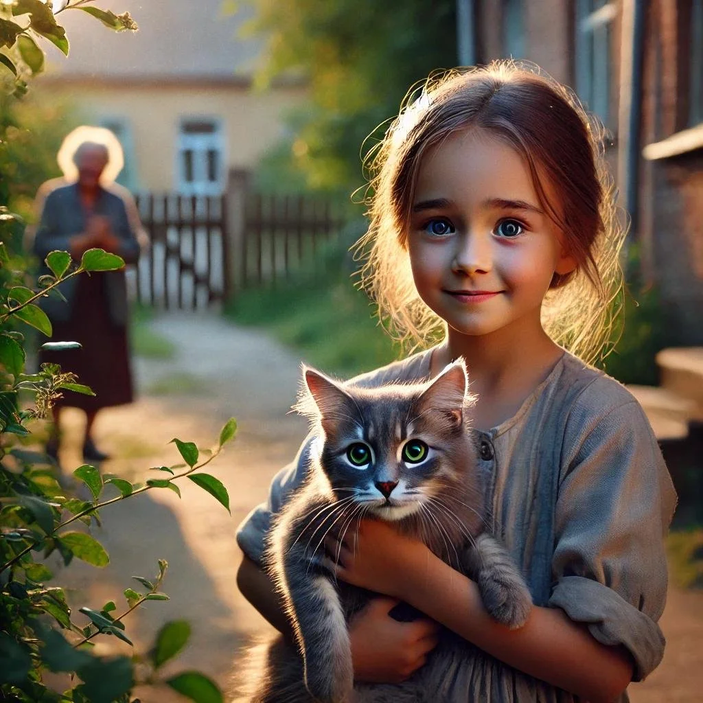 Anna is a girl who loves her cat, Tom. Tom is small and gray with big green eyes. Every day, Anna feeds Tom, plays with him, and makes sure he is safe.