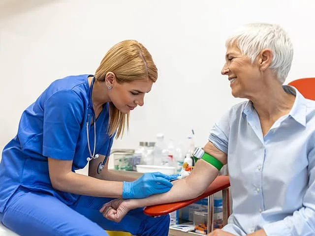 A healthcare worker trained to draw blood.
