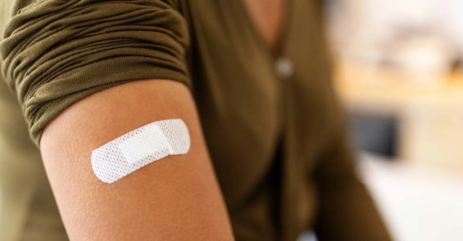 A small covering placed on the skin after the needle is removed.