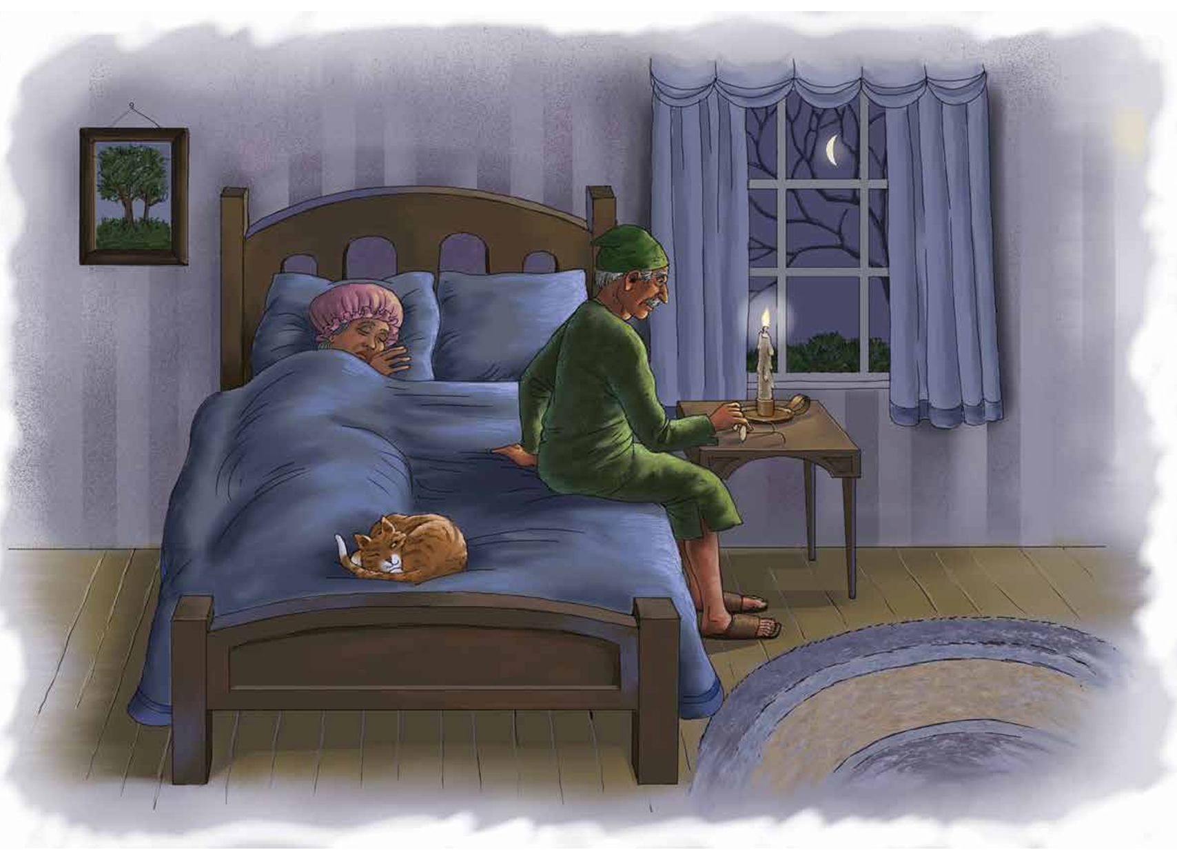 That night, the shoemaker left the leather on his workbench and went to bed. He decided he would make his last pair of shoes in the morning.
