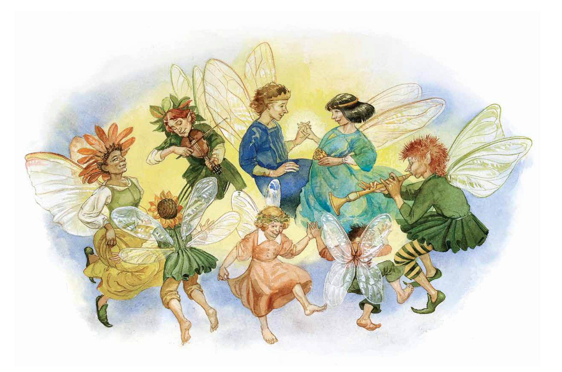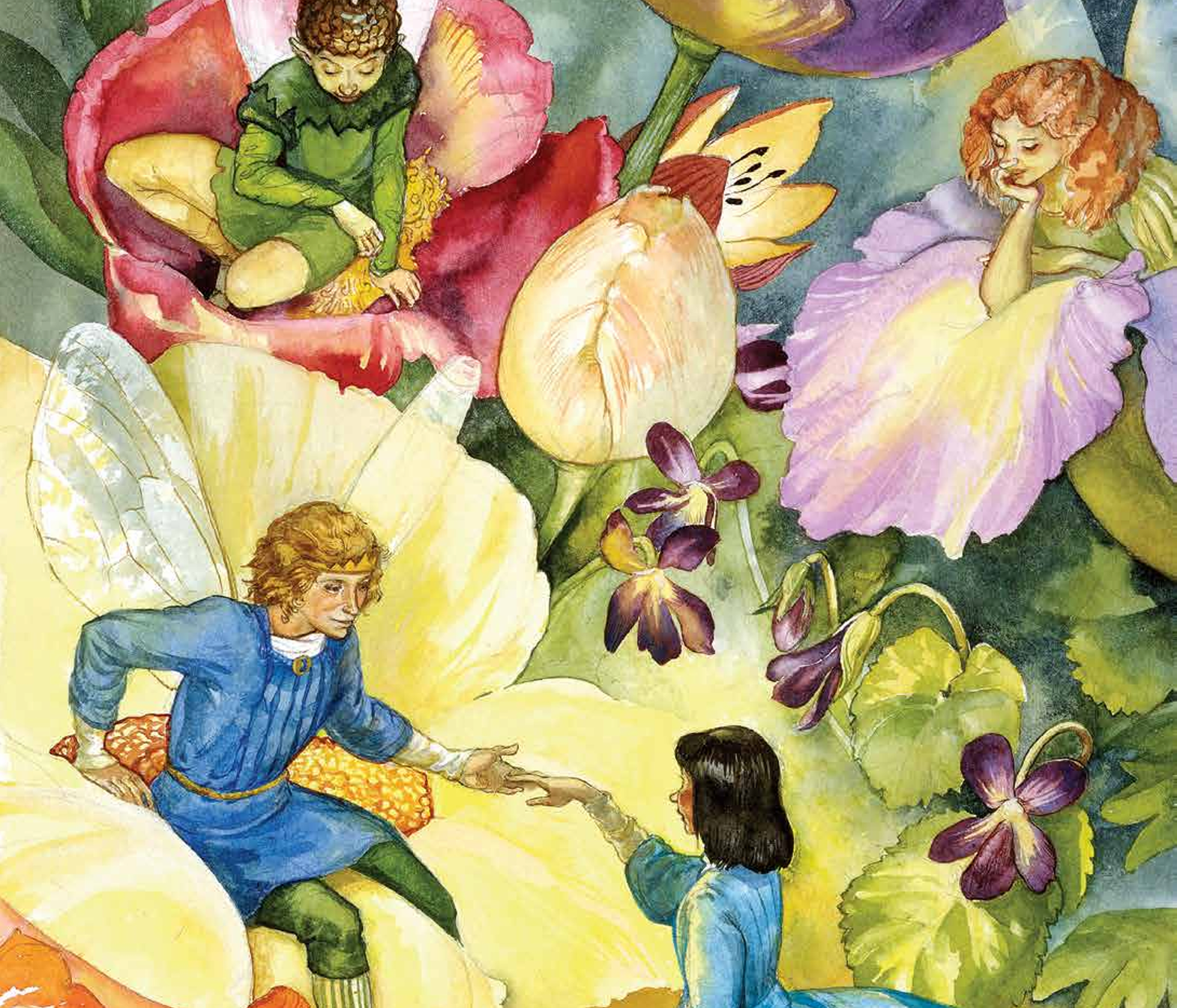 In a new land filled with flowers, Thumbelina met a king. He was tiny, too!
