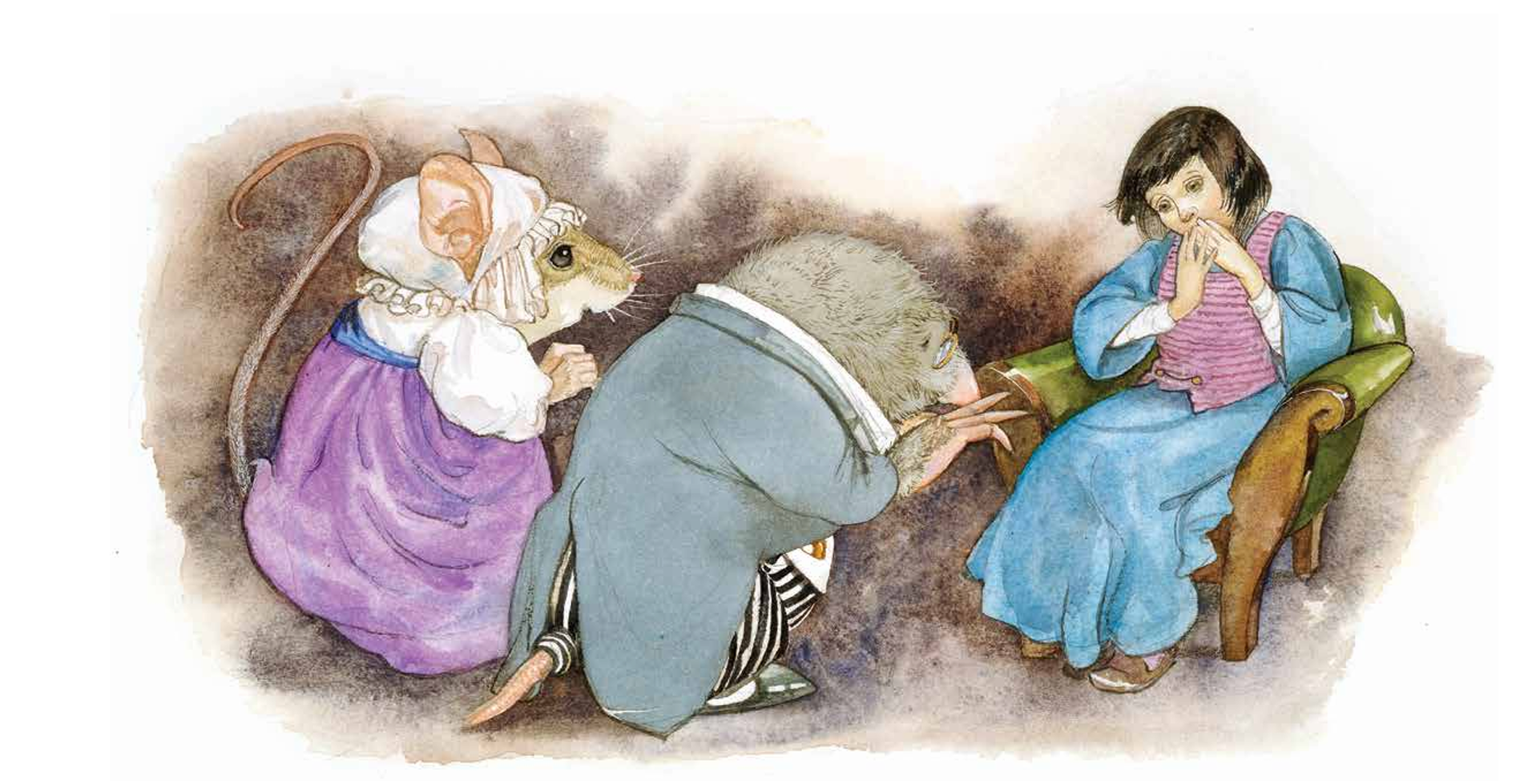 A field mouse took pity on her. “My dear, you must come home with me,” the field mouse said.