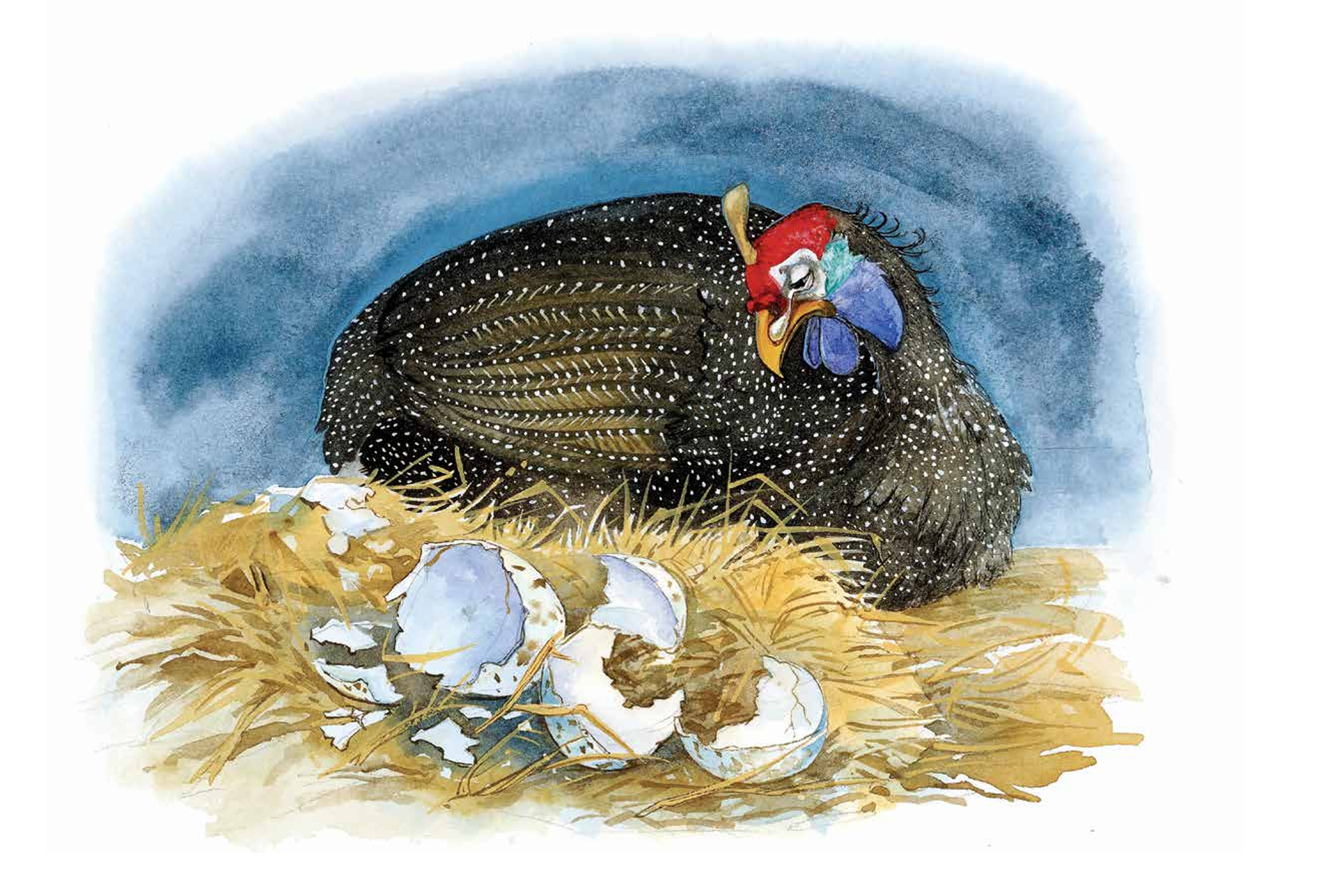 “My eggs are all broken!” wailed the bushfowl. She began to cry—sob! sob! sob! And there she stayed, beside her nest, for many days and nights.